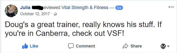 Vital Strength and Fitness is a Personal Training/Fitness provider and community where people can learn about fitness, strength, healthy living, longevity, mindset and nutrition . This is accomplished through my Face to Face Personal Training, Online Personal Health and Fitness Coaching, Workshops and Weekend Warrior programs. We do offer very limited times and sessions for Face to Face Personal Training, however my main service is though my Online Coaching service.